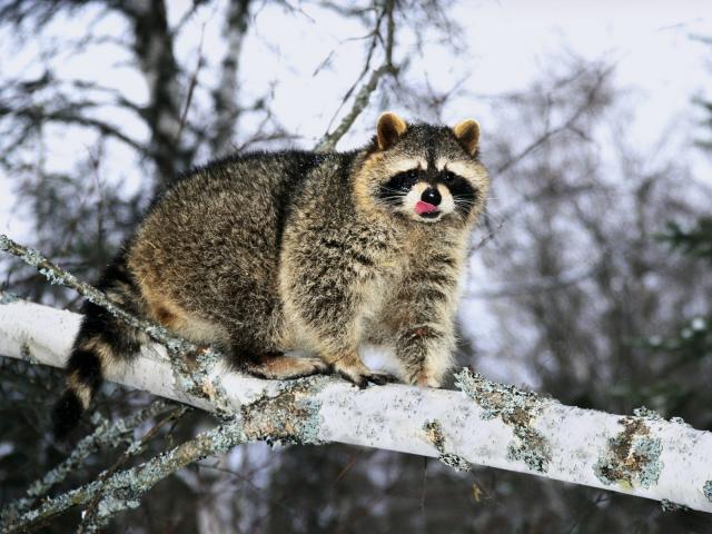Wallpaper Raccoon on a tree