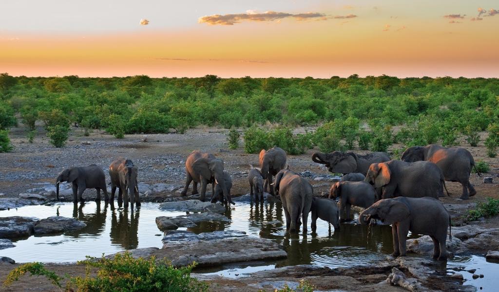 Wallpaper Elephants at the Watering