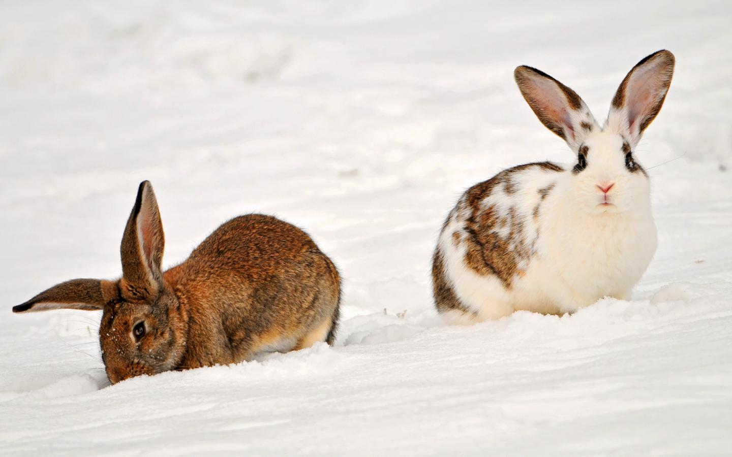 Wallpaper Rabbits in the snow