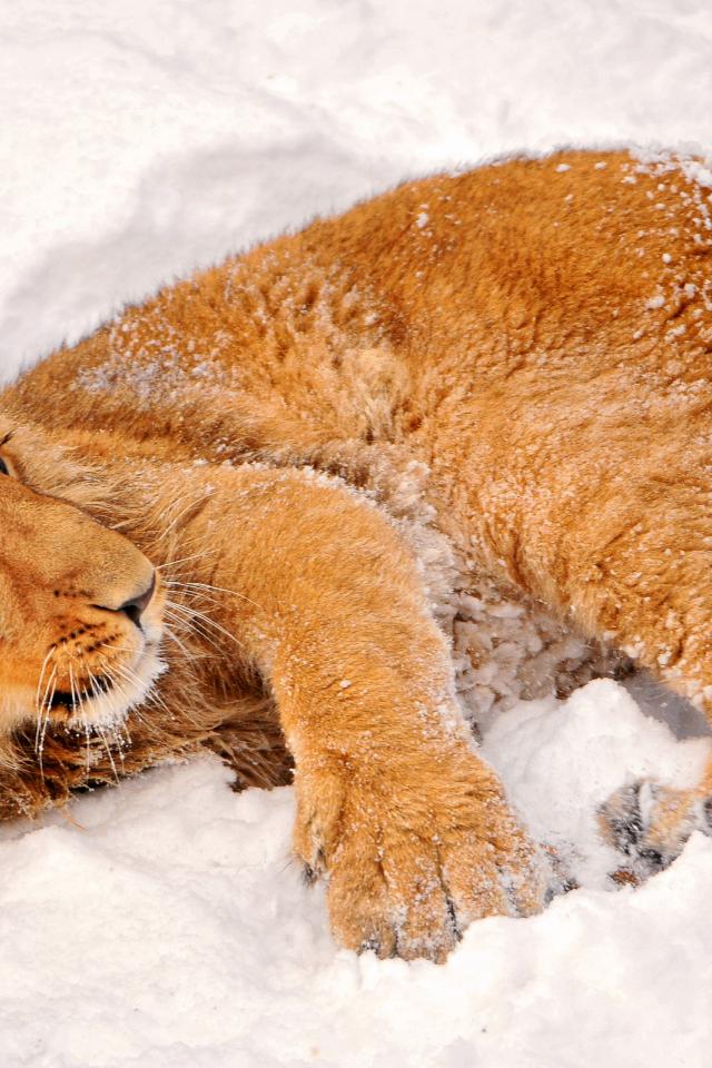 Wallpaper Lion in the snow