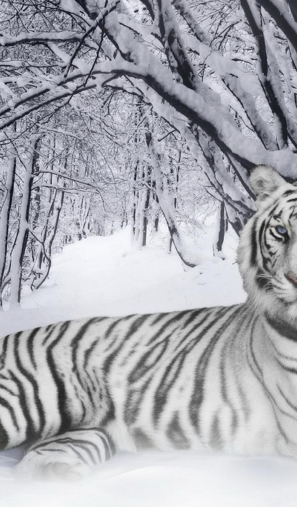 Wallpaper Tiger in wood