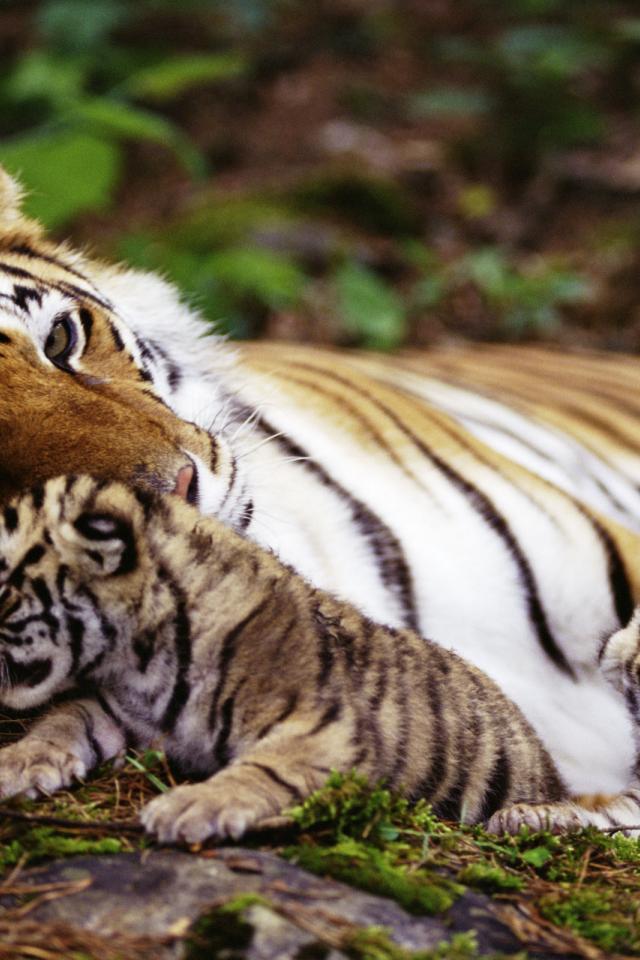 Wallpaper Tigress and kittens