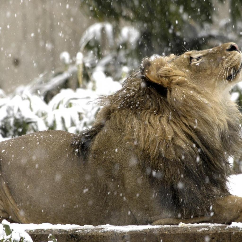 Wallpaper Lion under snow
