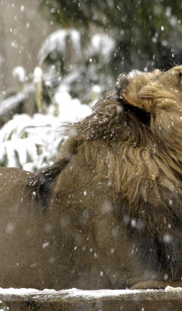 Wallpaper Lion under snow
