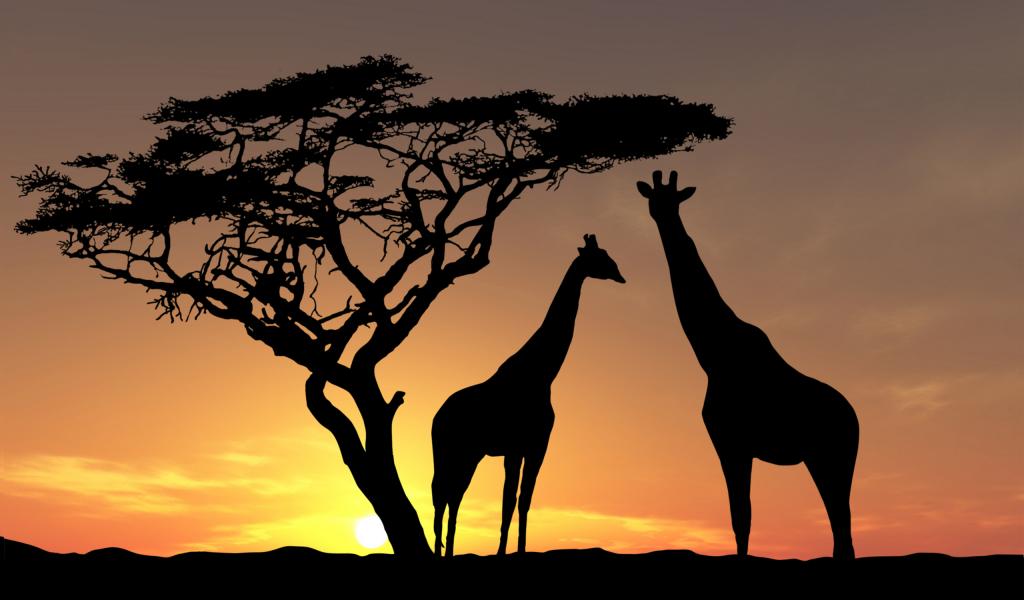 Wallpaper Giraffes in the sunset shadows