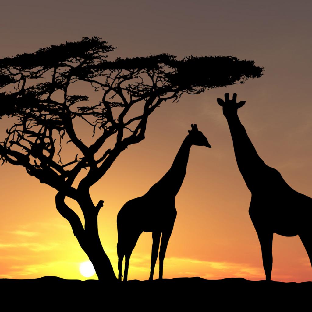 Wallpaper Giraffes in the sunset shadows