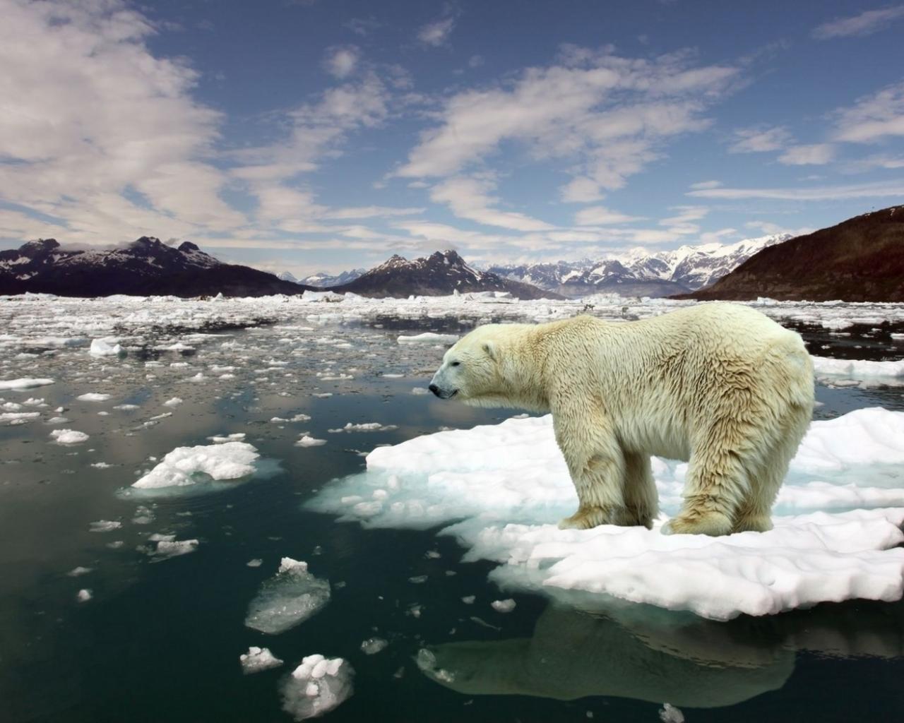Wallpaper Polar bear on ice floe