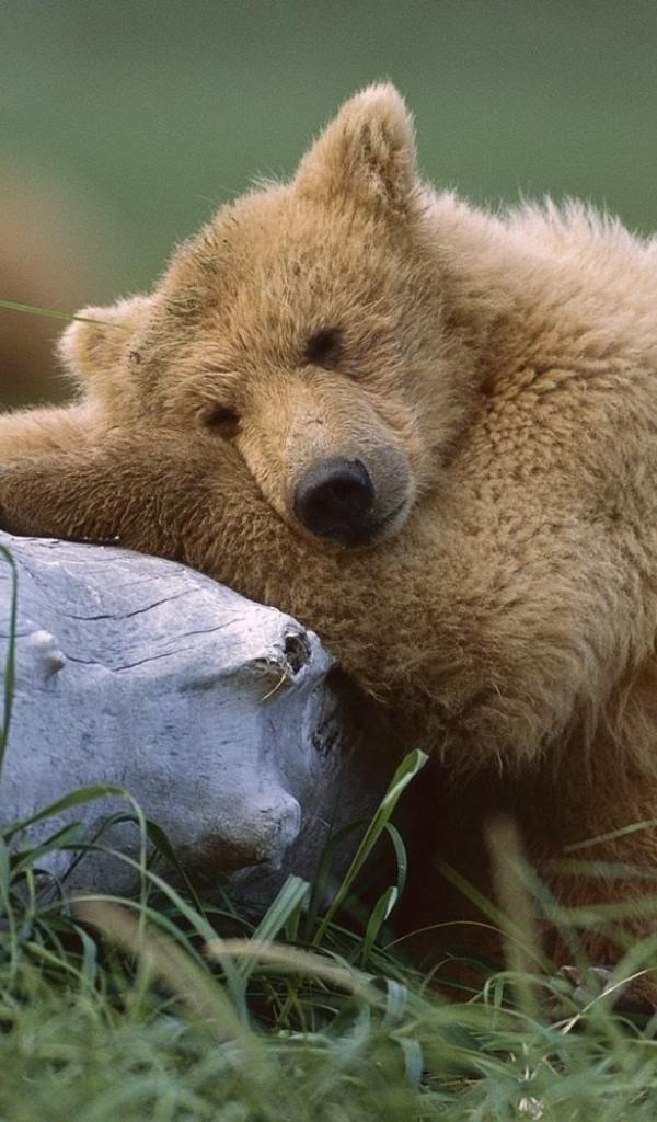 Wallpaper Bear with a log