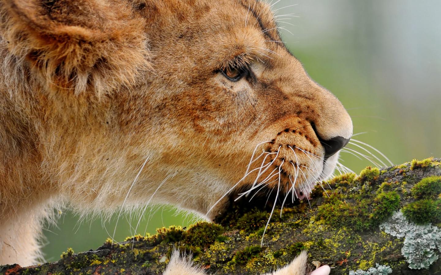 Wallpaper Lioness gnawing a branch