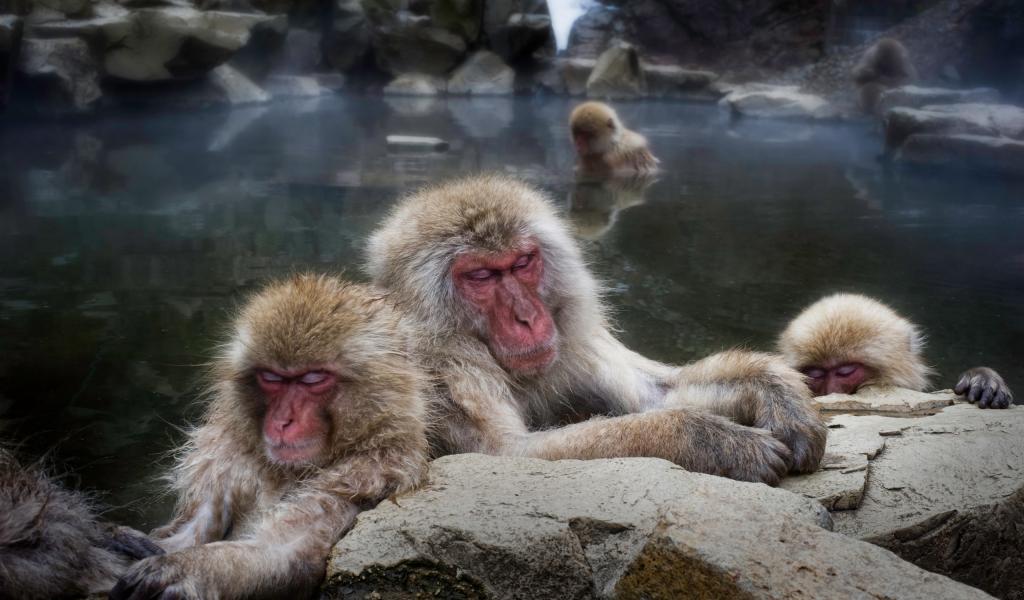 Wallpaper Macaque in the hot spring