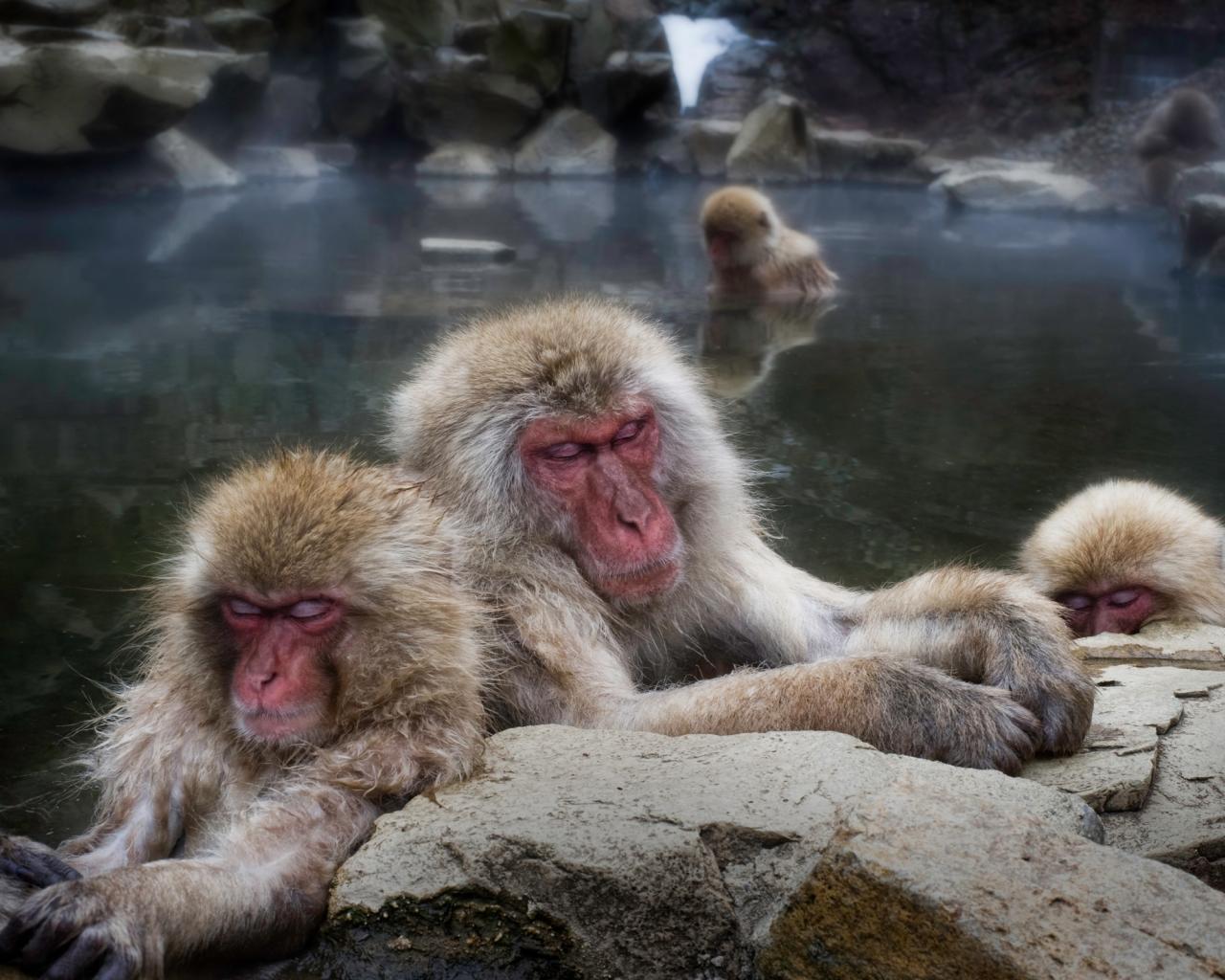 Wallpaper Macaque in the hot spring