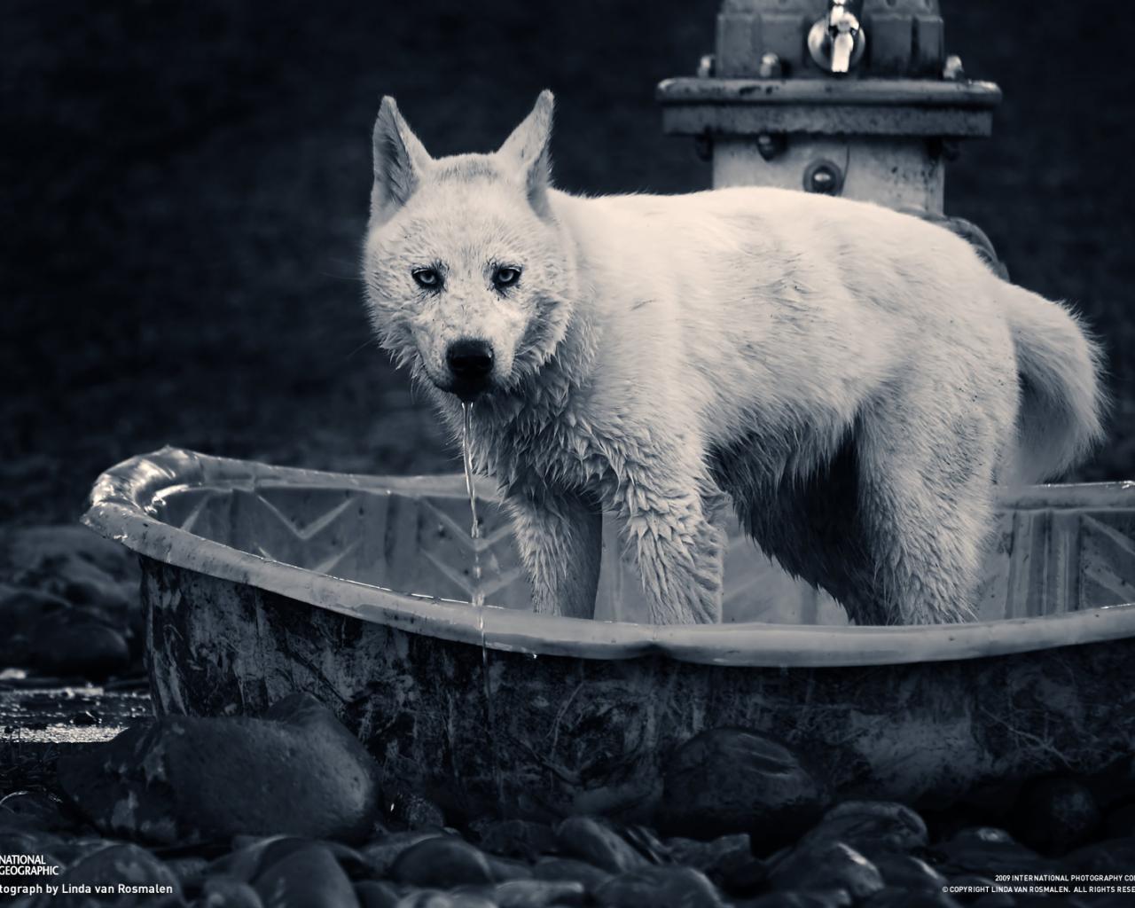 » Wallpaper Wolf in the bathroom