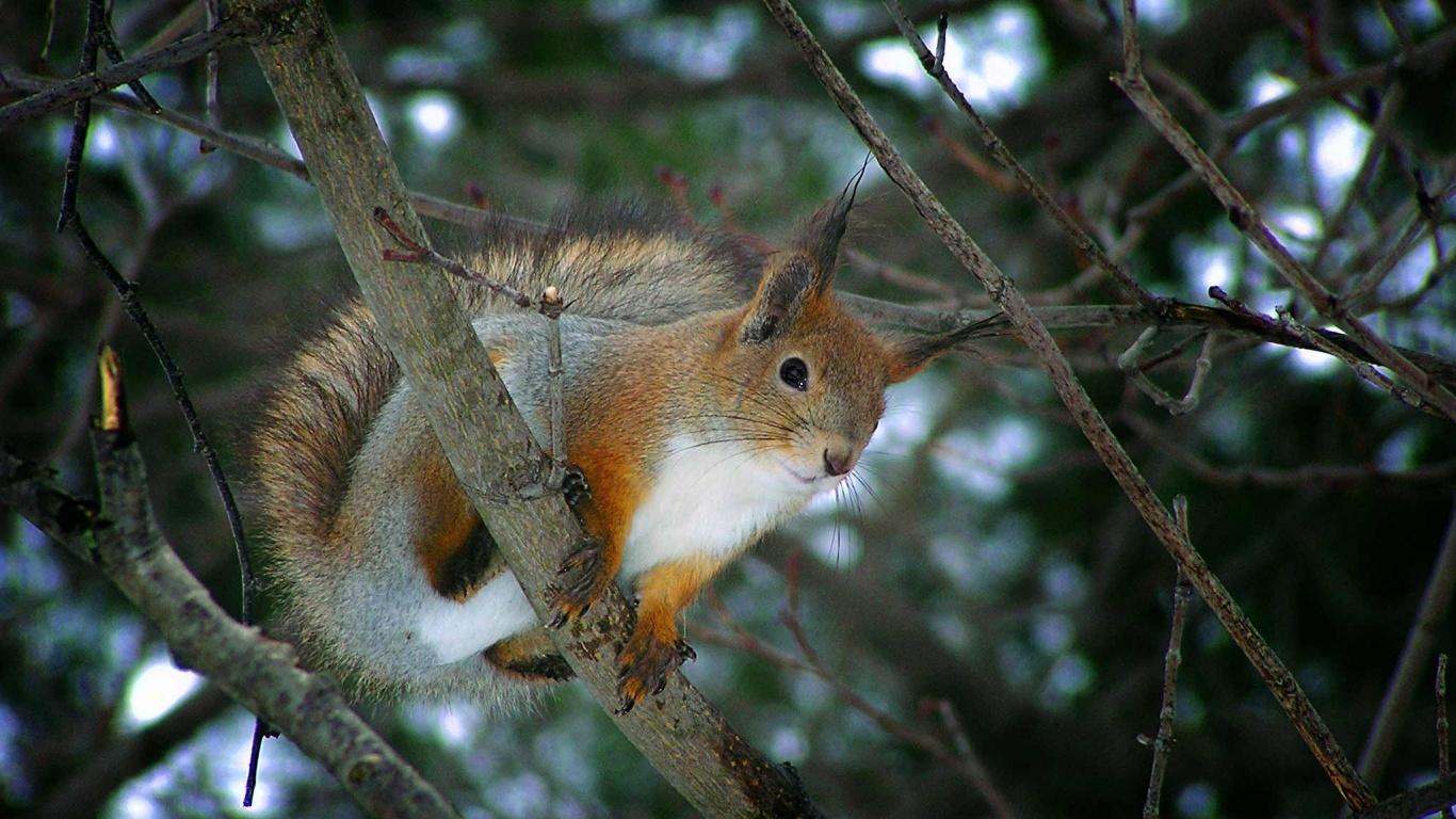 Wallpaper Snow, Trees, Squirrels