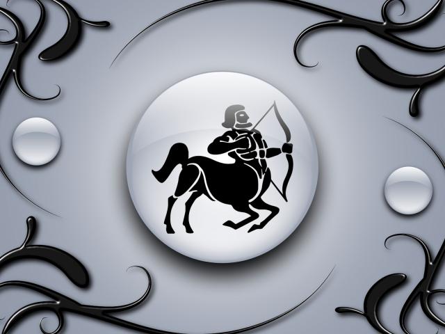 Wallpaper Sagittarius Sign on a gray background with black ornaments