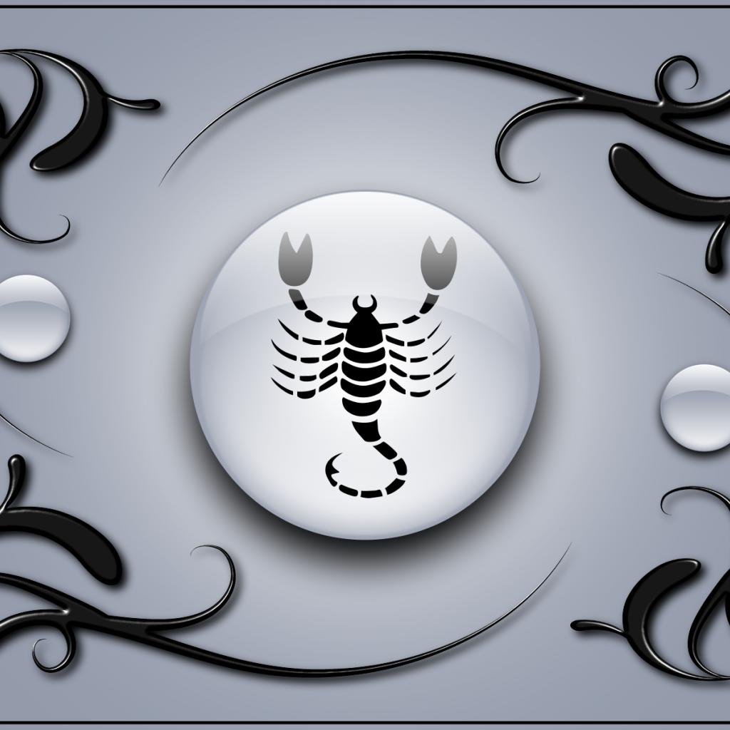 Wallpaper Scorpio on a gray background with black ornaments