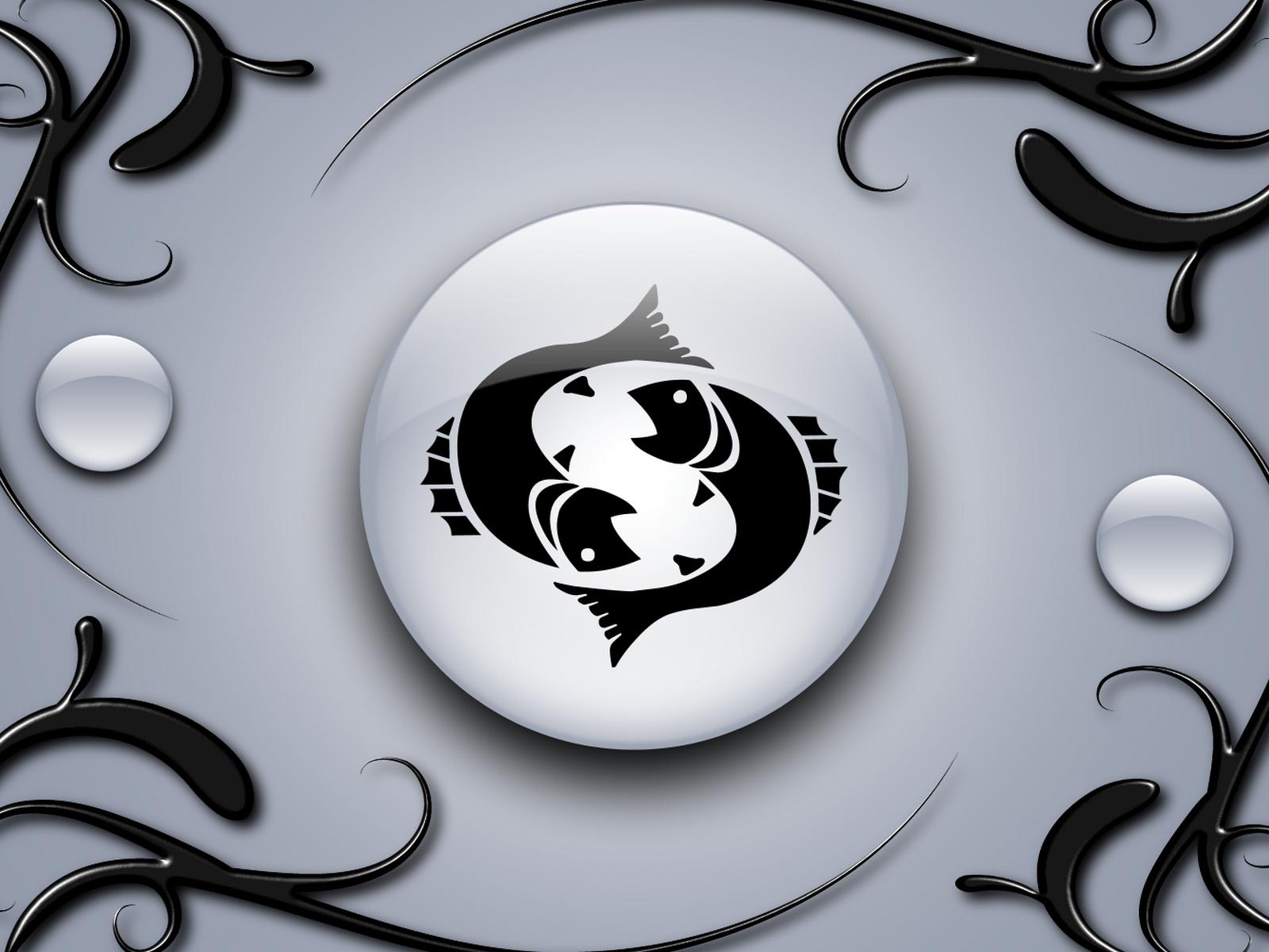 Wallpaper Sign pisces on the a gray background with black ornaments