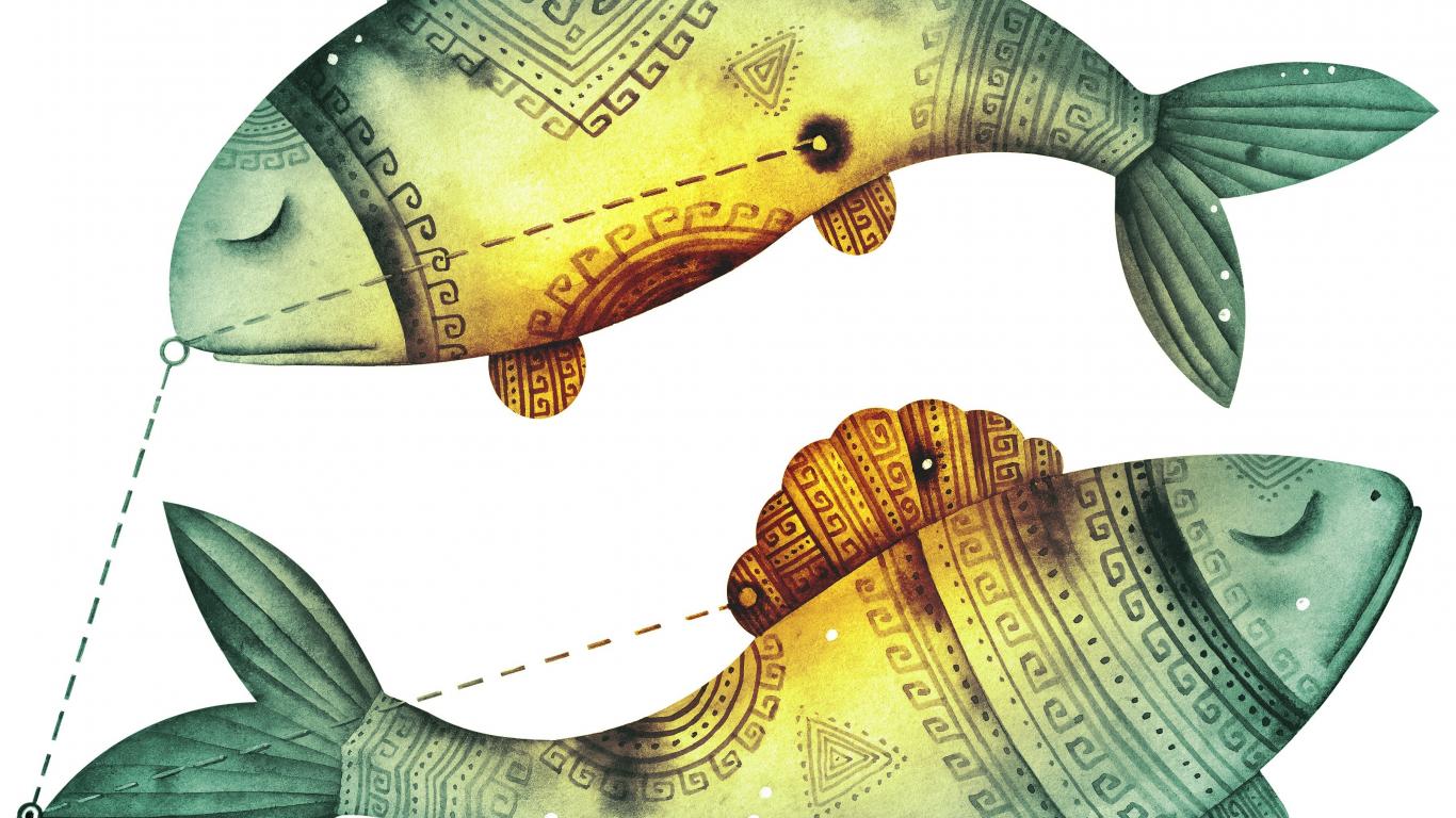 Wallpaper Sign pisces on the a gray background with black ornaments