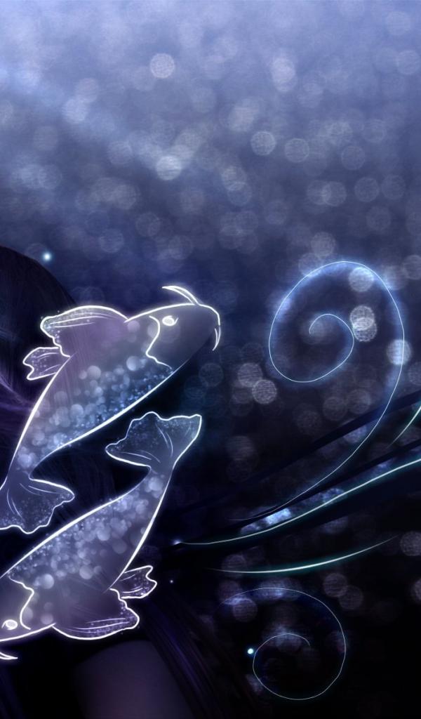 Wallpaper Sign pisces on the a gray background with black ornaments