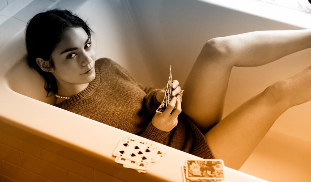 Wallpaper Vanessa Hudgens posing in the bathroom