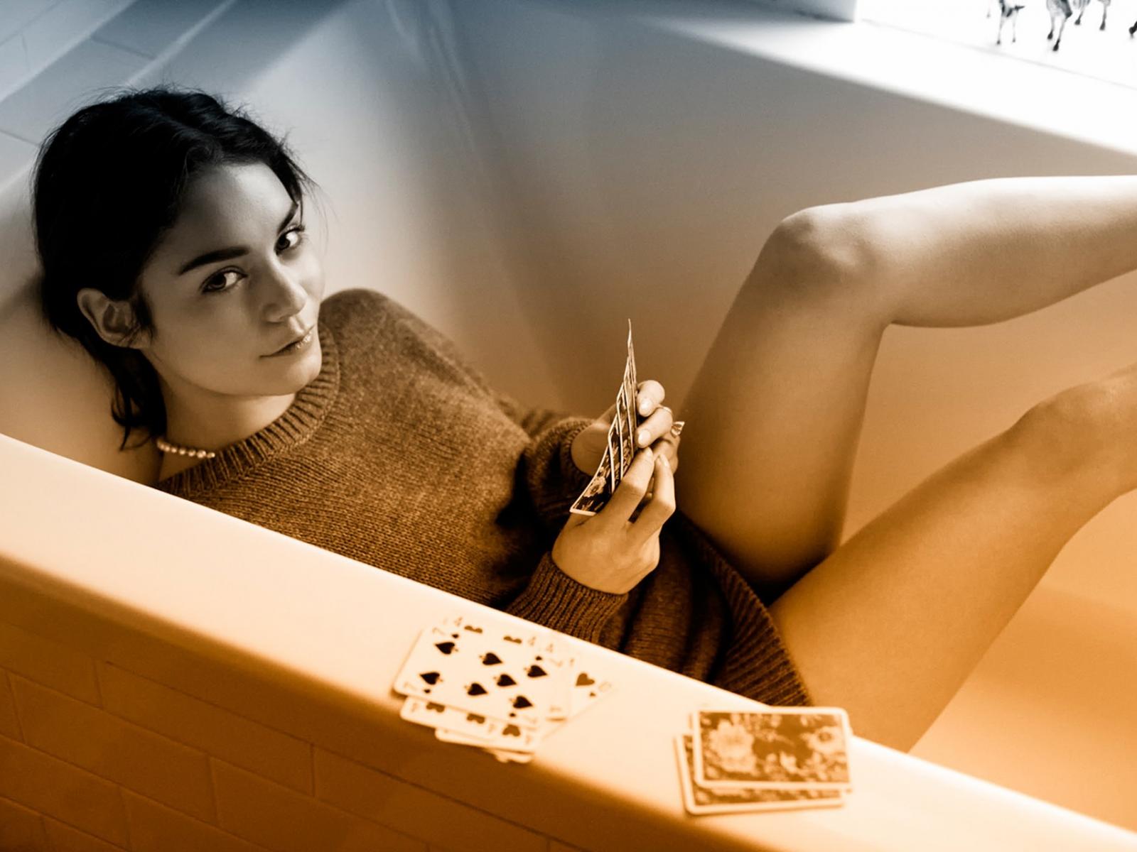Wallpaper Vanessa Hudgens posing in the bathroom