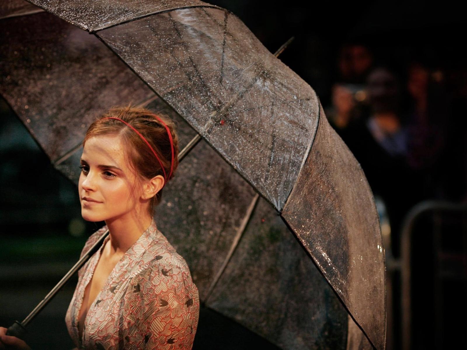 Wallpaper Emma Watson with an umbrella