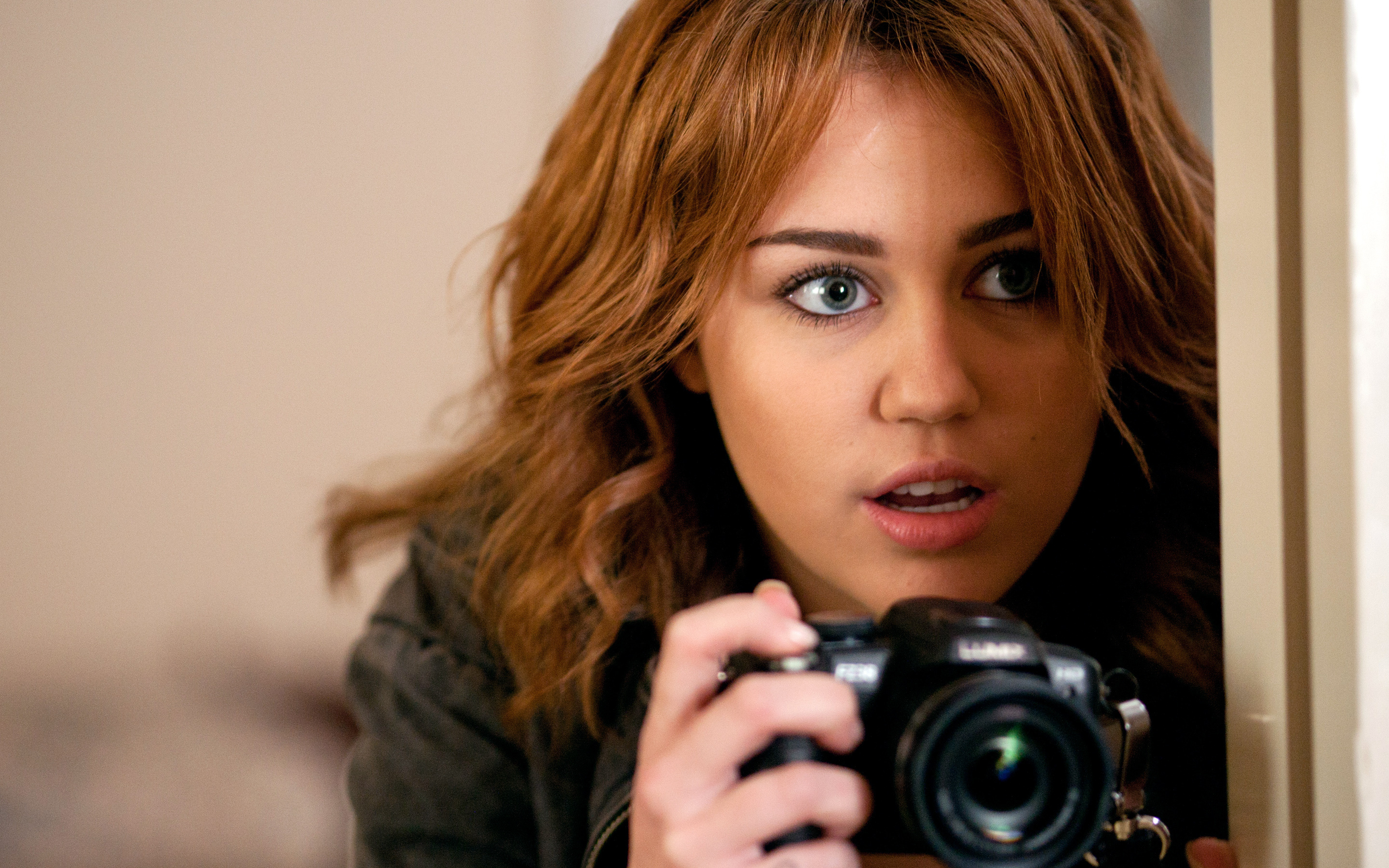 Wallpaper Miley Cyrus with a camera