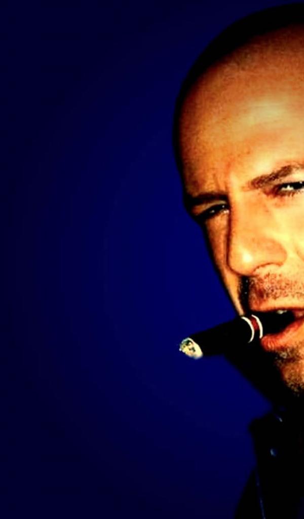 Wallpaper Famous Actor Bruce Willis is smoking a cigar